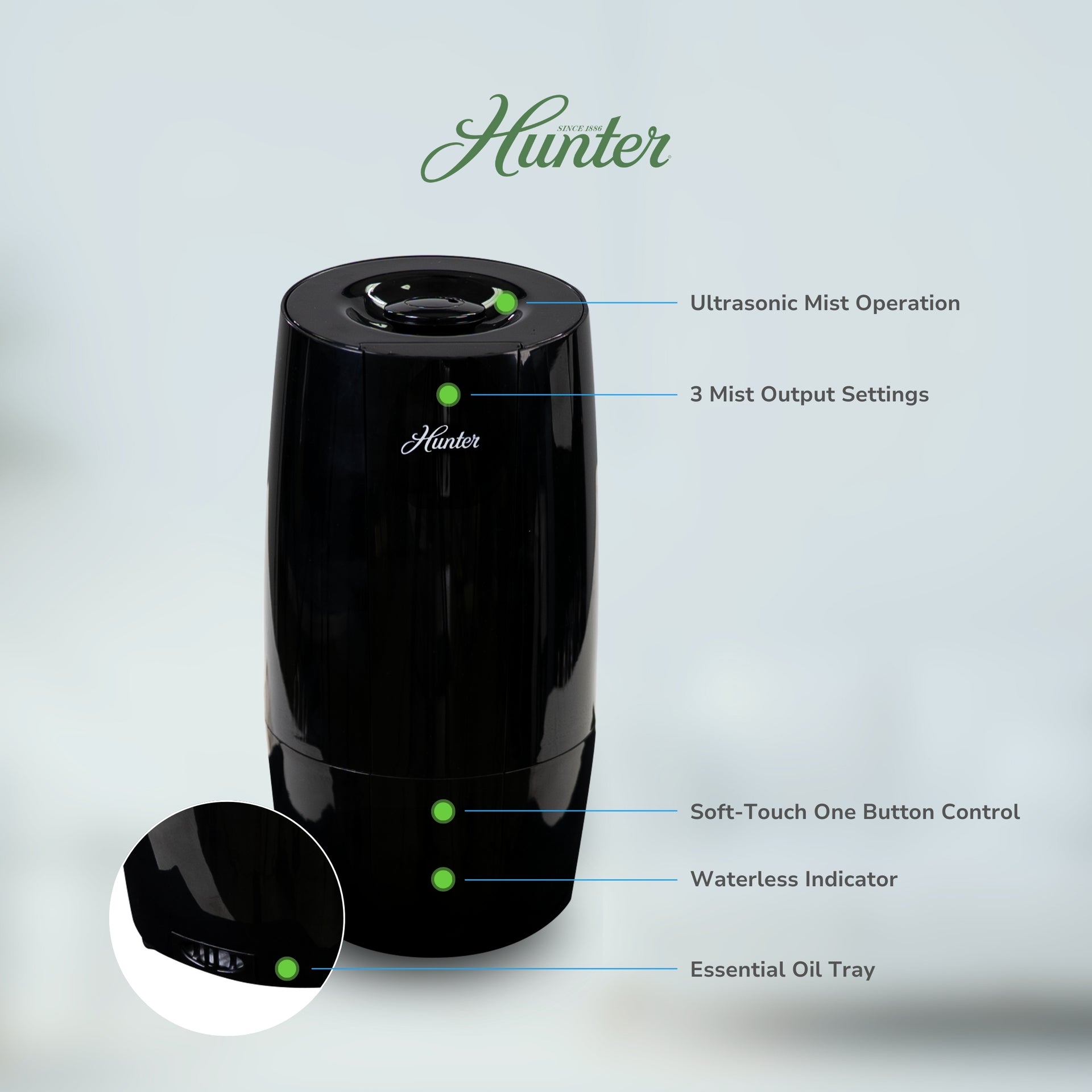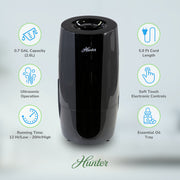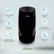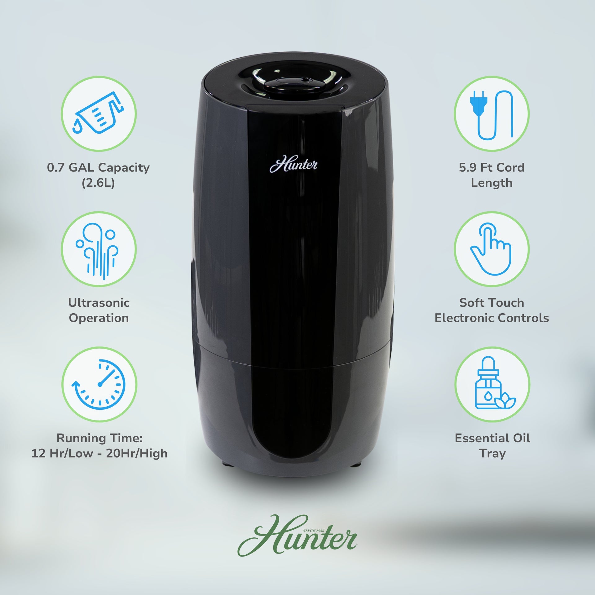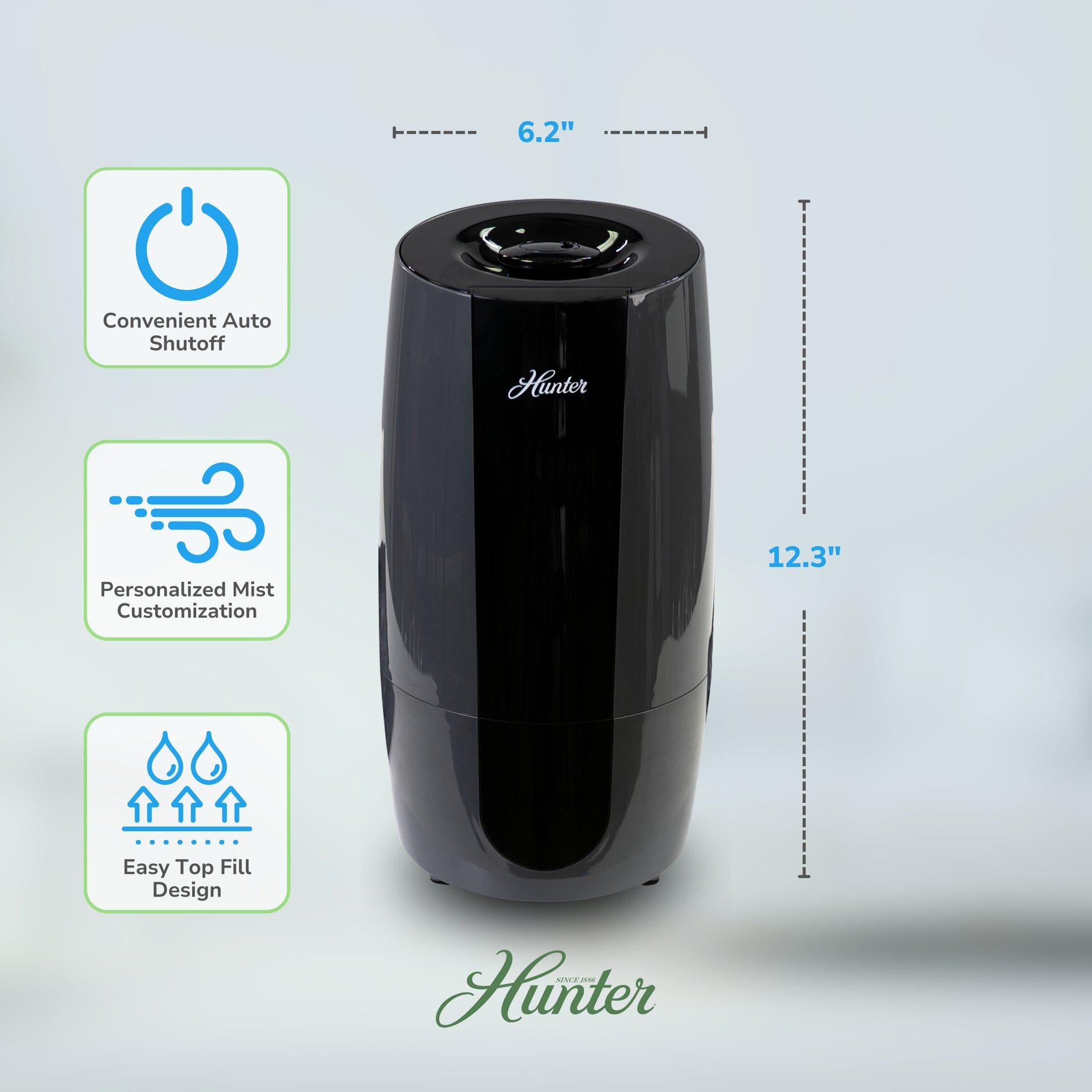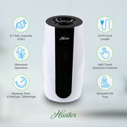 Experience a world of refreshing comfort with the latest Hunter Fan Company Aspire Cool Mist 0.7 Gal Ultrasonic Humidifier, our newest addition to enhance your home or office. This charming device may look cute on the outside, but it's built to perform with its .7-gallon tank, allowing you to enjoy adjustable cool mist output that humidifies your environment, making any room in your home or office more comfortable. It's the perfect size for any room, efficiently delivering a revitalizing cool mist for up to 20 hours. Plus, its built-in accent light casts a soothing glow, ideal for setting a relaxing mood in the evening. This delightful 0.7-gal humidifier comes ready to improve your daily life by effortlessly marrying practical functionality with simple, attractive design. Welcome this new humidifier to your space and experience the difference for yourself, thoughtfully designed by Hunter and available in 5 designer colors.