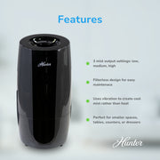 - EASY TO CLEAN: No need to clean the Hunter Fan Company Aspire Cool Mist humidifier with harsh chemicals- simply use a vinegar and water mixture once a week to avoid mineral build up and help ensure the humidifier is running effectively.
