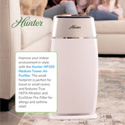 Enhance the air quality in your living space with the Hunter HP100 Small HEPA Air Purifier, designed for effective purification in your bedroom, living room, dorm, and other rooms in your house. Our premium air purifier is the perfect addition to your home, providing top-notch filtration for a cleaner and healthier environment. With its intuitive interface and user-friendly controls, maintaining and operating our air purifier is a breeze. Keep your home's air quality at its best with our Compact Air Purifier - the ultimate solution for those seeking fresh, clean air in a compact and convenient package. Order now and experience the difference it can make in your everyday living space.