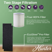 Replacement filter value pack for Hunter HP400 Cylindrical Tower Air Purifier. The value pack includes two pre-filters and one True HEPA filter.