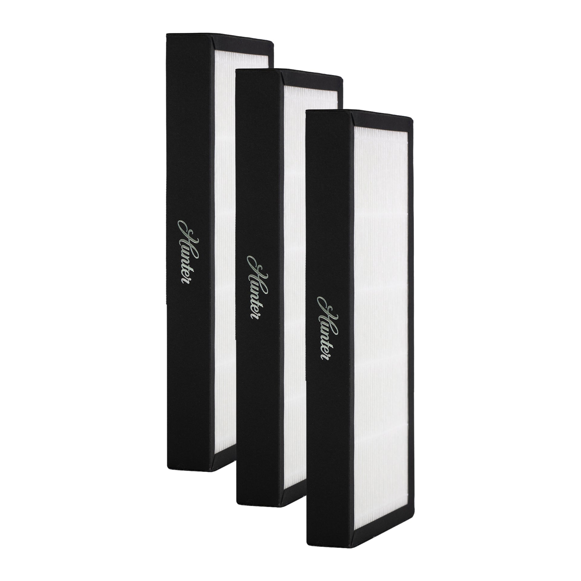 Compatible with Hunter F1701HE and F1701HE/21 replacement air purifier filters. Engineered to fit Hunter air purifier models HT1701, 30100. True HEPA filtration is rated H13 and removes up to 99.97% of airborne particles as small as 0.3 microns in size.