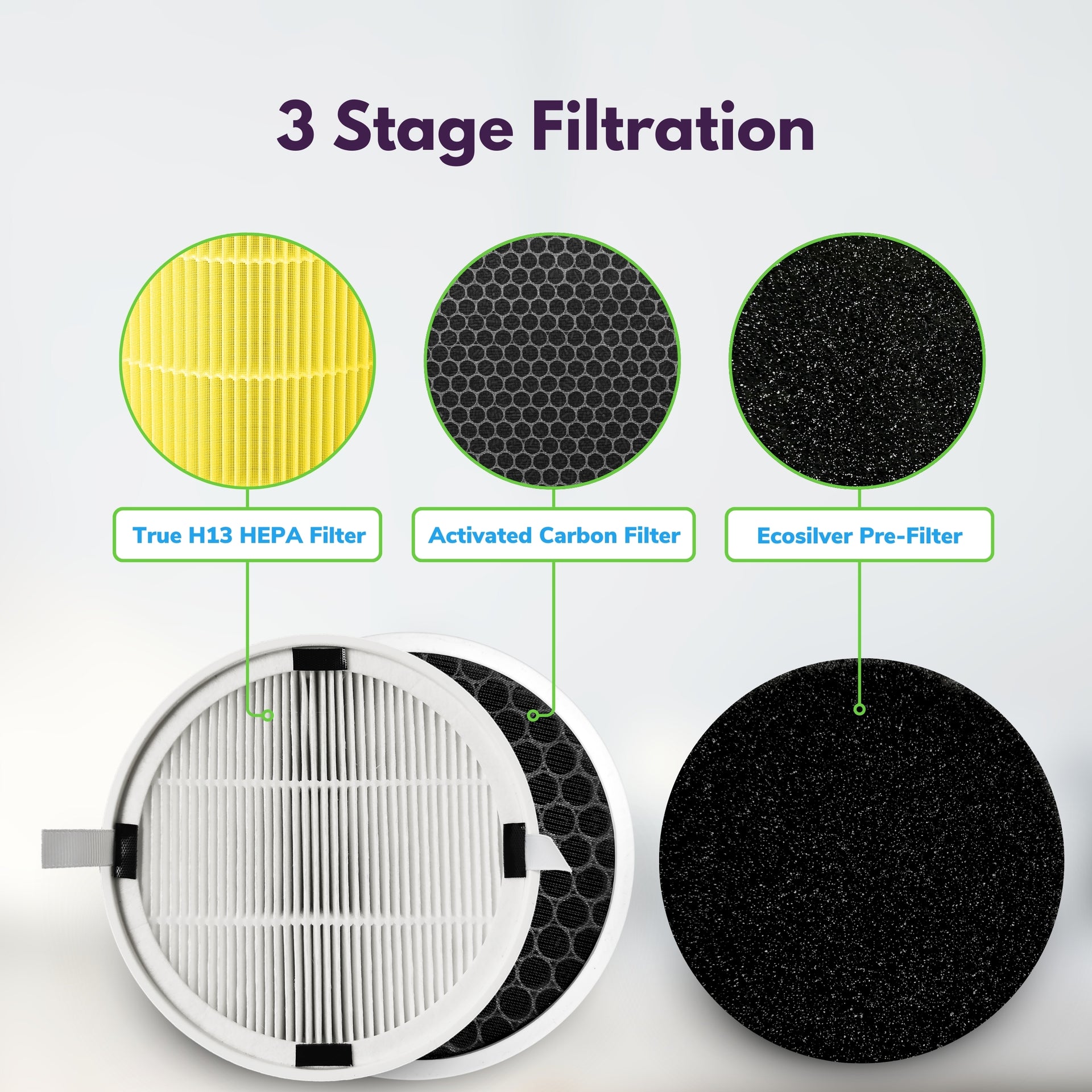 - Silver nanoparticles in the EcoSilver® pre-filter prevent the growth of microorganism on the filter, including bacteria and viruses