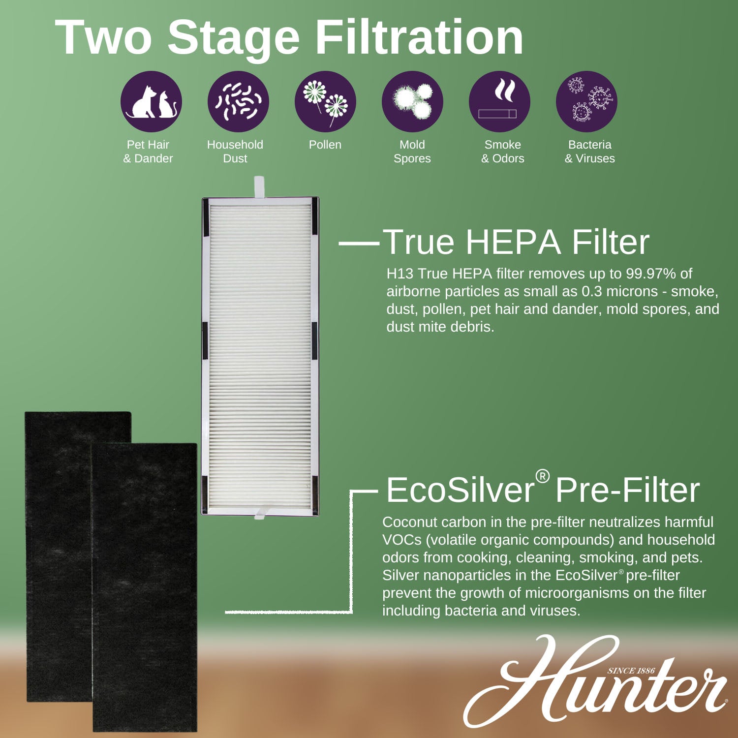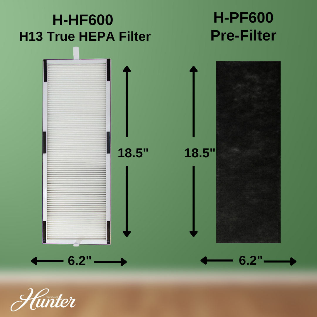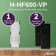 Replacement filter value pack for Hunter HP600 Tall Tower Air Purifier. The Value pack includes two pre-filters and one True HEPA filter.