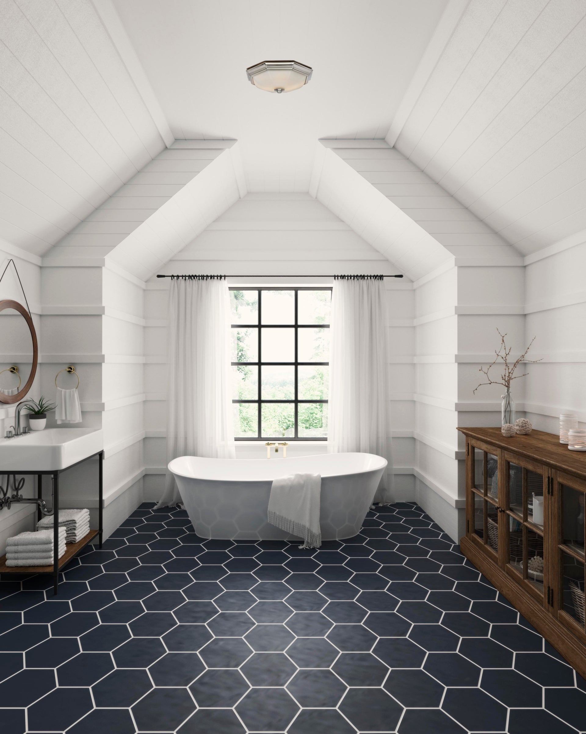 - Brushed nickel finish with cased white glass.
