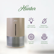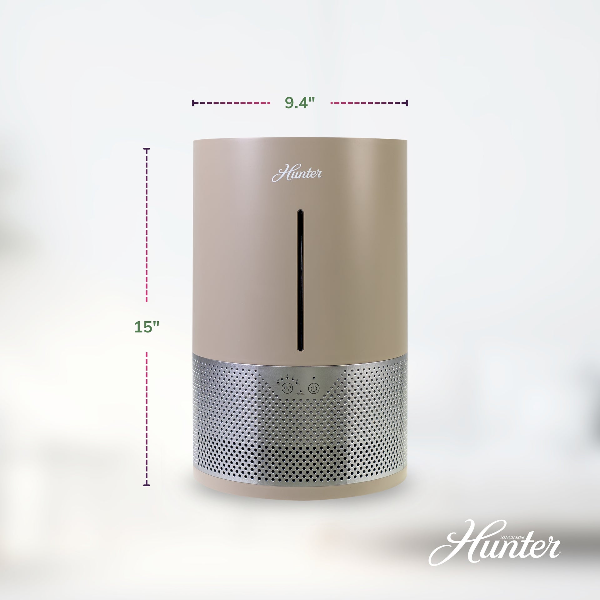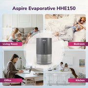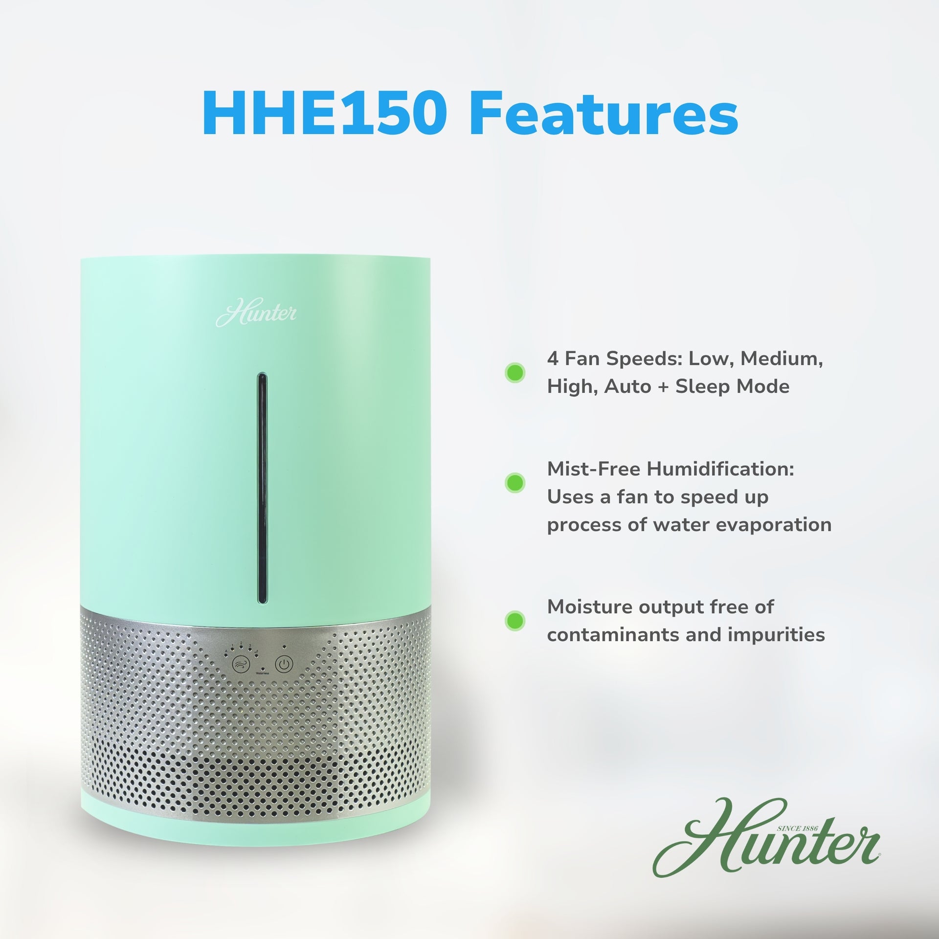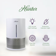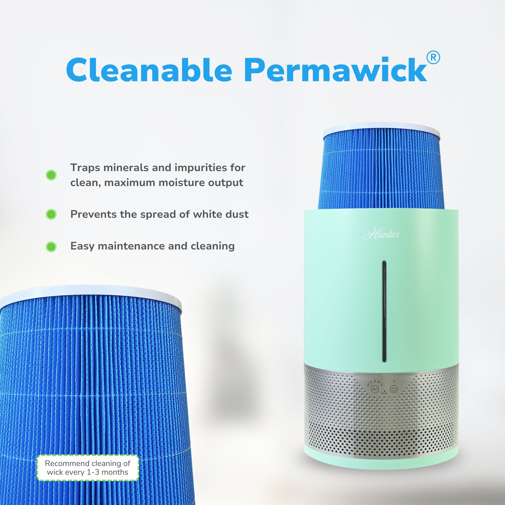 Feel the difference in humidifier delivery and control with the Hunter Aspire Evaporative Humidifier. This advanced mist-free humidifier optimizes your living space using a PermaWick to trap minerals and impurities, ensuring clean moisture output and preventing the spread of white dust. The HHE150 Aspire 4.8L Evaporative Humidifier effectively covers areas up to 456 sq. ft., making it ideal for home or office usage and comes in four colors: graphite; aqua; taupe; and white. Revolutionize your indoor environment with this exceptional humidifier that offers targeted results that cater to your individual needs from Hunter.