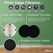 • COCONUT CARBON PRE-FILTER: The Coconut Carbon Pre-Filter not only captures larger particles, but also excels in eliminating harmful VOC's, stubborn household odors, and pet odors, ensuring a comprehensive air purification experience with the Hunter HP125 HEPA air purifier.
